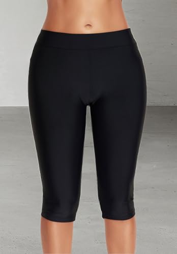 Akaeys Women Knee Length Swim Shorts Leggings Sun Protection Rash Guard Pants Sports Crop Swim Tights Tankini Bottom 1