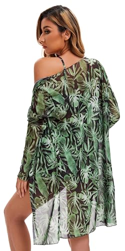 Yknktstc Womens 3 Pieces Bikini Set Swimsuit Tropical Beach Cover up Kimono Swimwear Bathing Suit with Boy Shorts 6