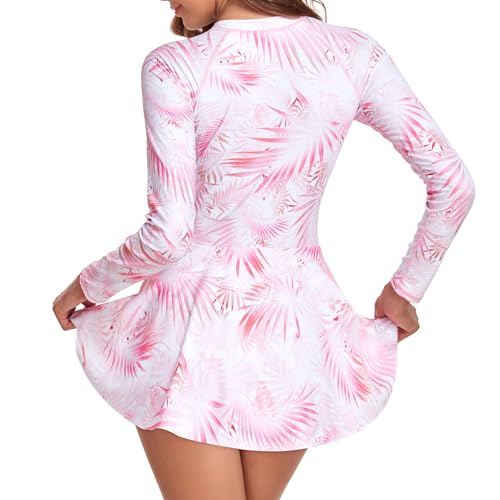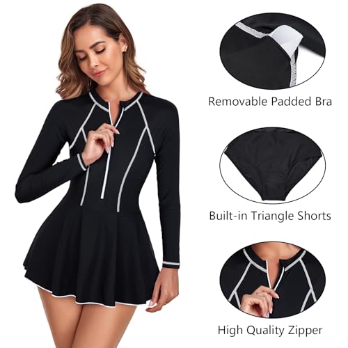 • Material: Women's long sleeve one piece swim dress are made of polyester. Soft, quick-dry and breathable durable fabric offers tighter fit while you enjoy your time on the beach. Exclusive UV Block fabric with UPF 50+, protecting you against rashes, abrasions and harmful UV rays.