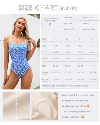XUNYU One Piece Swimsuit for Women Tummy Control Bathing Suit Teens Full Coverage Modest Swim Suits 2025 Cute Floral Swimwear 2