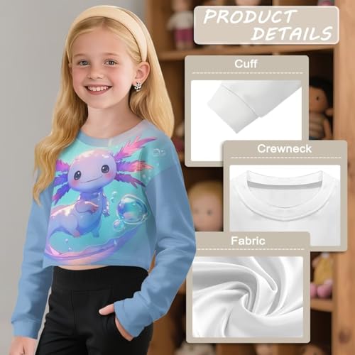 Toddler Long Sleeve Shirt Girl Crewneck Soft Girls Crop Tops for 5-14 Years Cute Pullover Outdoor 4