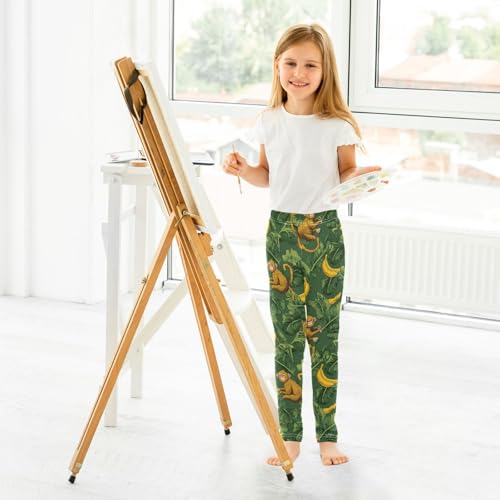 Boccsty Green Leaves Yellow Banana Brown Monkey Girls Leggings Kids Yoga Pants Dance Active Tights 4T 1