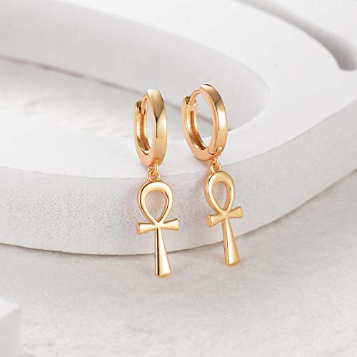• Size: Unique dainty ankh cross hoop earrings with cute ankh cross drop dangling. The inner diameter of the ring is 8mm. external diameter is 12 mm. width of the ring is 2.4mm, Ankh cross : 17*8mm.Ankh cross known as crux ansata (the Latin for "cross with a handle") is an ancient Egyptian hieroglyphic ideograph with the meaning "life"