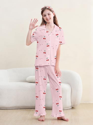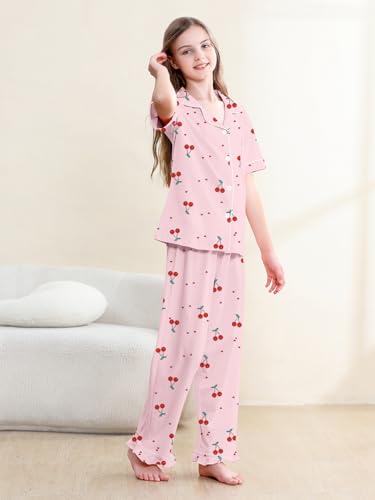 QZH.DUAO 3 Piece Girls Pajama Sets 100% Cotton Ruffle Long Pants with Shorts Sleepwear 3pcs Button Down PJs 5-14 Years 6