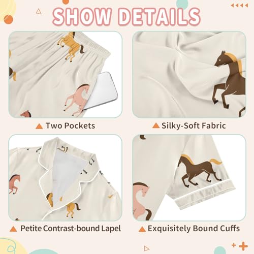More information about Satin Pajama Sets Short Sleeve Cute Horses Seamless Pattern Button Down Silky Nightwear 2 Piece PJS 5-14Y