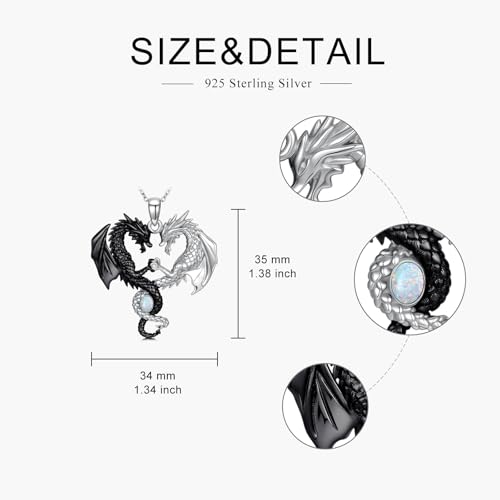 • 【PREMIUM QUALITY MATERIAL】Made from high-quality 925 sterling silver, this dragon pendant necklace is both durable and timeless, ensuring it will be cherished for years to come.