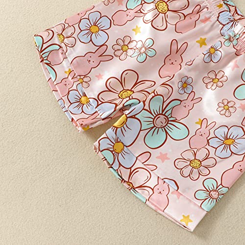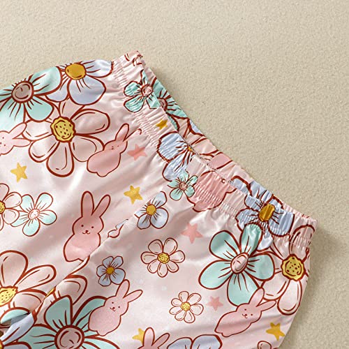 fyclemt Toddler Baby Boy Girl Easter Silk Pajamas Floral Bunny Short Sleeve Button Shirts Lounge Shorts Satin Pjs Sleepwear 7