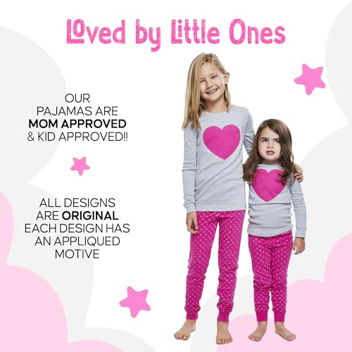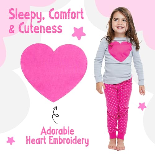 2 Piece Tag Free Pjs for Girls - 100% Cotton Pajamas Set - Kids Summer Pajama - Pink Heart Girl Sleepwear (12M-8Y) 4