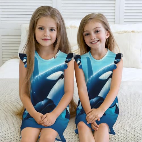 Augenstern Flutter Sleeve Nightgown Pajama Gown Killer-Whale-Sea Easy Pull-On Sleepwear Nightdress 2