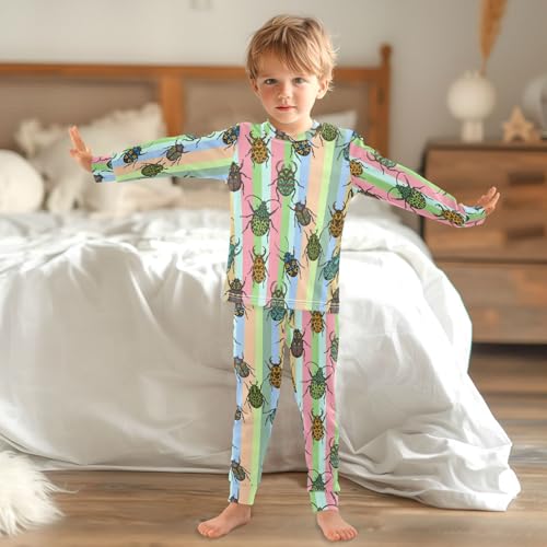Pajama Sets Long Sleeve Beetle Pattern Colorful Stripes Soft Comfy Sleepwear 2 Piece PJS 3-8T 2