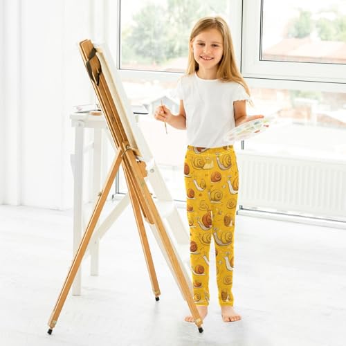Cute Orange Yellow Snail Girls Leggings Kids Yoga Pants Dance Active Tights 4T 5