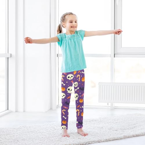 Cute Skull Candy Pumpkin Bat Girls Leggings Soft Stretch Workout Yoga Dance Pants for Kids Casual Tights 6
