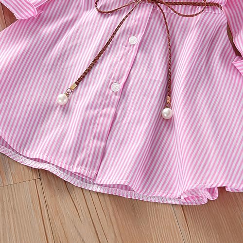 Toddler Girls Lapel Long Sleeve Striped Dress Top Casual Button Down Shirt Dresses with Belt Girl's Spring Clothing 6