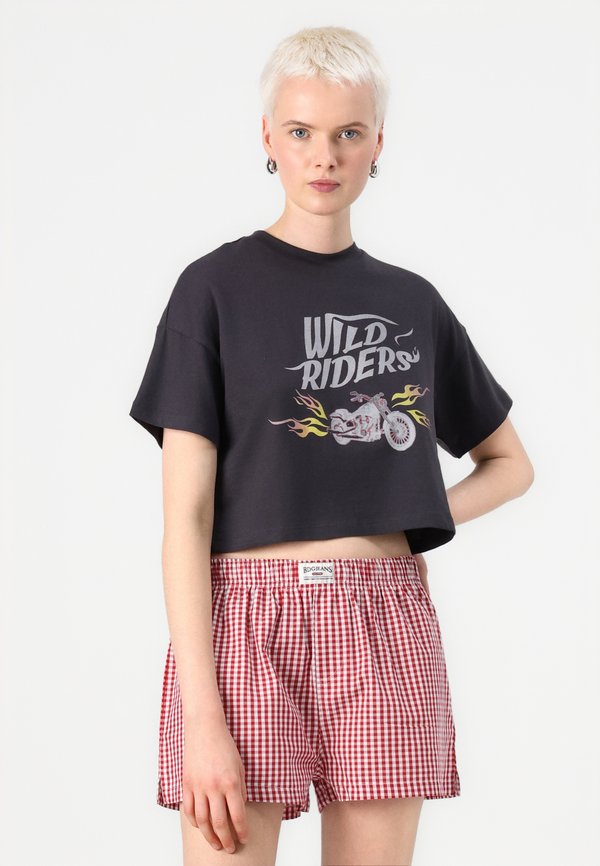 HOT ! NMALENA O NECK SEMICROP - Print T-shirt - obsidian