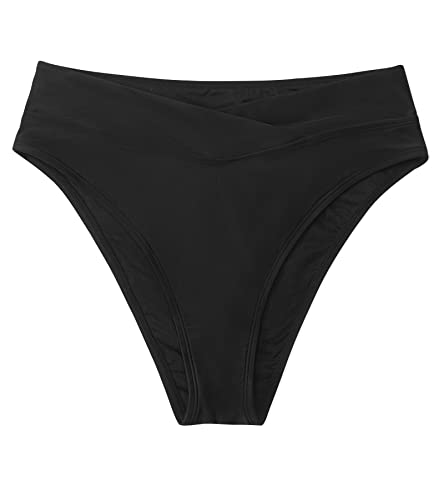More information about CUPSHE Women's Bikini Swimsuit Black High Waisted High Cut Cheeky V Cut Bikini Bottom