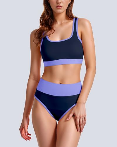 • Design:Two pieces period swimsuits sporty color block U-shaped design with wide straps tops,removable bra pad,tummy control bikini bottoms to perfect the curves of the body