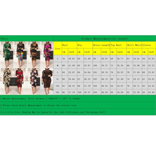 More information about Women Sexy See Through Sheer Mesh Bodycon Midi Dress Long Sleeve Skirt 3 Piece Outfits Set Floral Print Cover Up