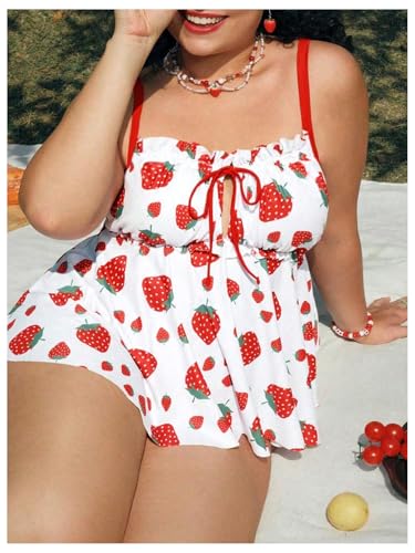 Verdusa Women's Plus Size 2 Piece Fruit Print Tankini Set Bow Tie Peplum Tops with Bottom 2