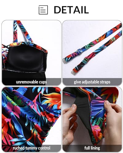 • Plus Size Strapless Bathing Suit: The plus size slimming swimsuit comes with removable straps that provide two style options. You can transform it into either double shoulder strap swimwear or a bandeau swimsuit.