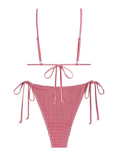 ZAFUL Women's Sexy Triangle Thong Bikini Set 2025 Plaids Print Two Piece Swimsuit Brazillian Cute String Bathing Suit 2