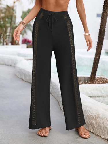 More information about Womens Crochet Knit Elastic Waist Beach Pant Summer 2025 Loose Fit Bathing Suit Cover Up Straight Leg Pants