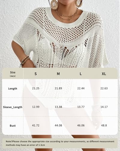 More information about Bsubseach Women Crochet Top Short Sleeve Swimsuit Coverup Summer Hollow Out Knit Tops Beach Cover Up