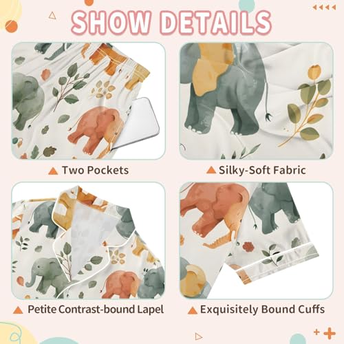 ALAZA Elephant Leaves Watercolor Satin Pajamas Set Short Sleeve Button Down Sleepwear Summer Pjs 2 Piece 6
