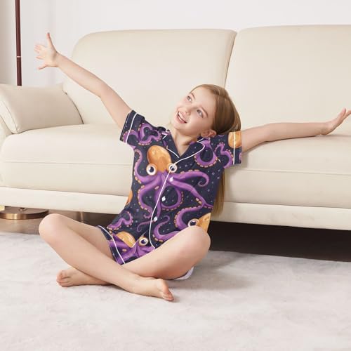 ALAZA Orange Kraken Pajamas Satin Pajama Set Short Sleeve Button Down Sleepwear 6