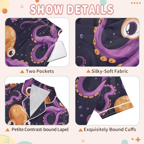ALAZA Orange Kraken Pajamas Satin Pajama Set Short Sleeve Button Down Sleepwear 4