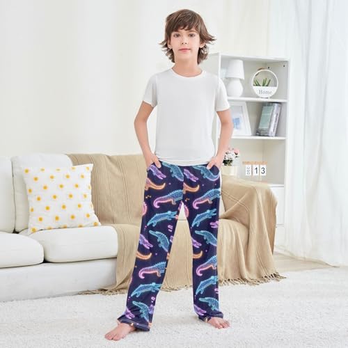 ALAZA Alligator Neon Pajama Lounge Pants Long Sleep Pajama Bottoms with Pockets 4