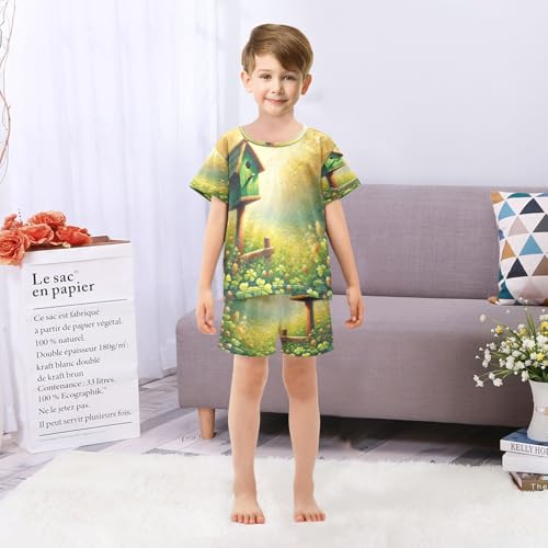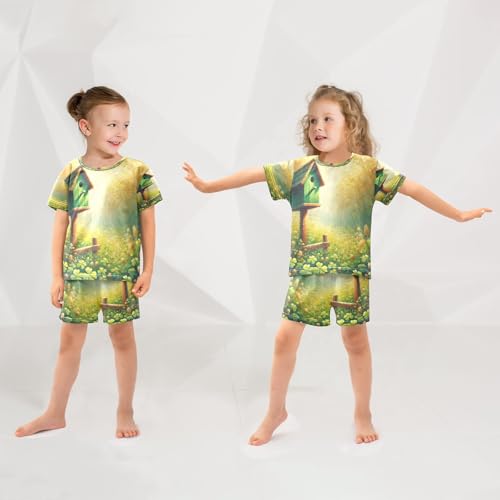 Cute Birdhouse St Patricks Cute Pajama Set Short Sleeve PJS 2 Piece Summer Pajamas Shorts Sets Cotton 5Y 4