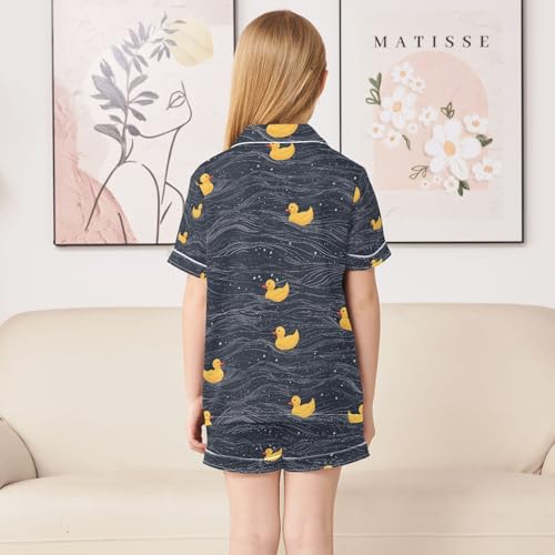 senya Funny Duck Swim V Satin Summer Pajama Sets Silk Short Sleeve Button Down Sleepwear 4