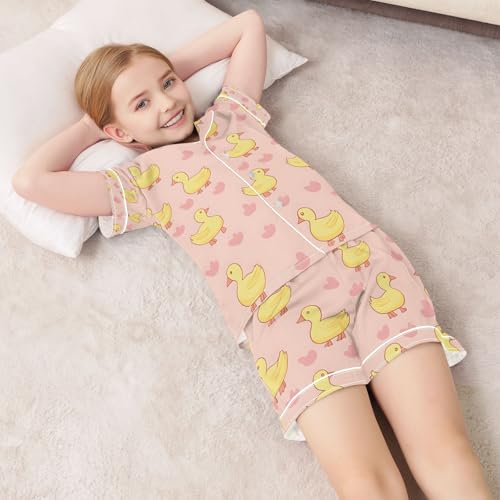 senya Yellow Duck Heart O Satin Summer Pajama Sets Silk Short Sleeve Button Down Sleepwear 1