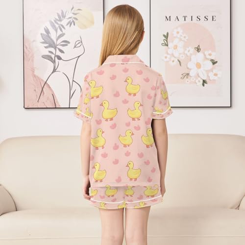 senya Yellow Duck Heart O Satin Summer Pajama Sets Silk Short Sleeve Button Down Sleepwear 2