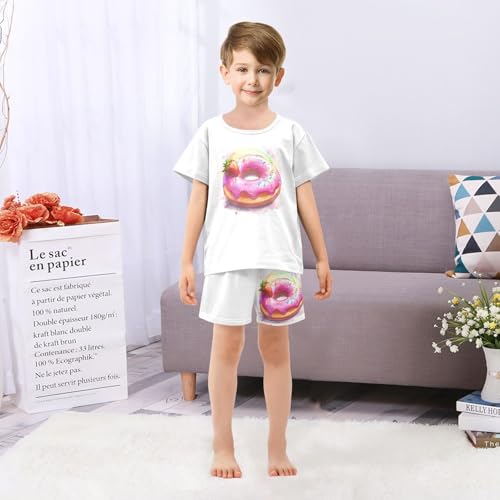Donut Colorful Sprinkles White Pajama Set Short Sleeve Sleepwear Soft Pajamas Shorts Sets Cotton PJS 5Y 6