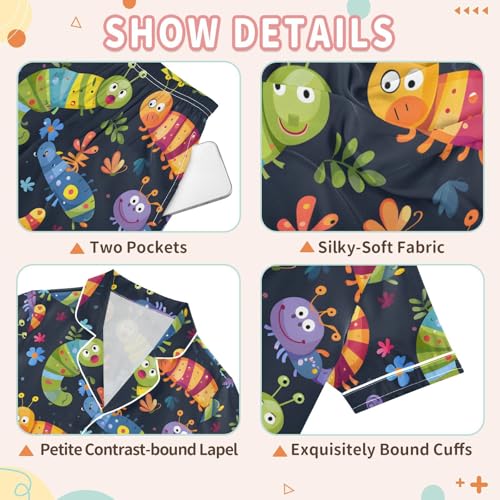 ALAZA Colored Cartoon Caterpillar Satin Pajamas Set Short Sleeve Button Down Sleepwear Summer Pjs 2 Piece 4