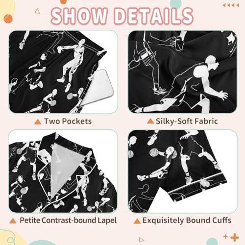 ALAZA Basketball Player Black Satin Pajamas Set Short Sleeve Button Down Sleepwear Summer Pjs 2 Piece 2