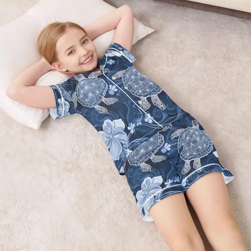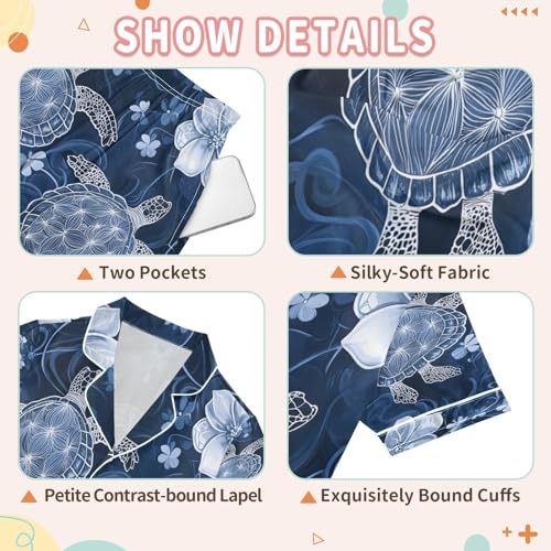 More information about ALAZA Beautiful Sea Turtle Flower Blossom Satin Pajamas Set Short Sleeve Button Down Sleepwear Summer Pjs 2 Piece