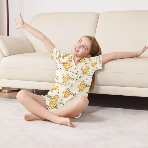 HOT ! senya Duck Musical Instrument Satin Summer Pajama Sets Silk Short Sleeve Button Down Sleepwear