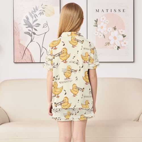 senya Duck Musical Instrument Satin Summer Pajama Sets Silk Short Sleeve Button Down Sleepwear 1