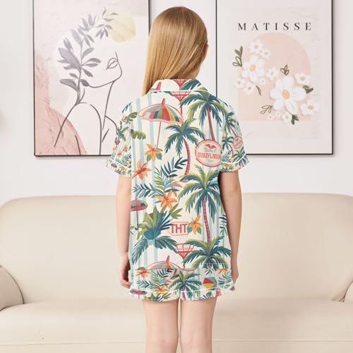 senya Coconut Trees and Umbrellas Satin Summer Pajama Sets Silk Short Sleeve Button Down Sleepwear 1