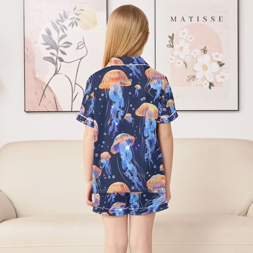senya Beautiful Jellyfish Satin Summer Pajama Sets Silk Short Sleeve Button Down Sleepwear 1