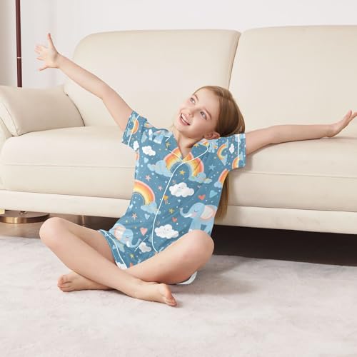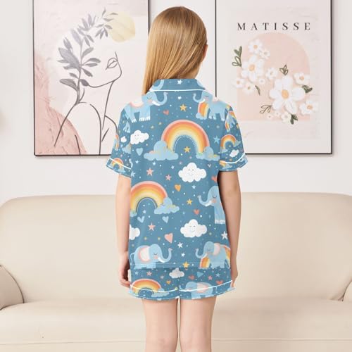 senya Elephants Rainbow Satin Summer Pajama Sets Silk Short Sleeve Button Down Sleepwear 1
