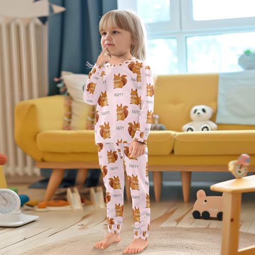 senya Cute Squirrel Happy Pajamas Set Long Sleeve Soft Cotton Sleepwear 2 Piece 2