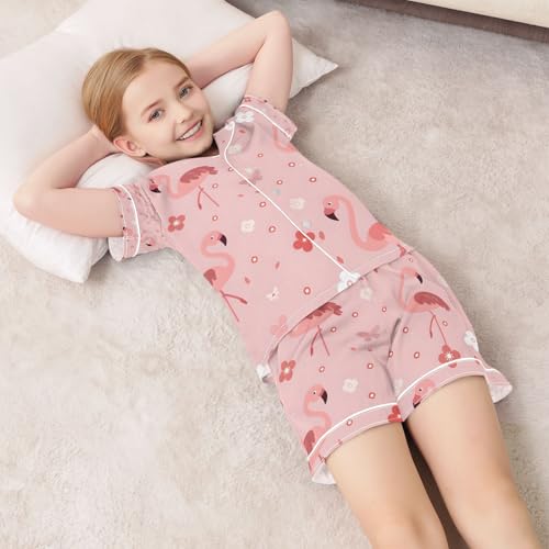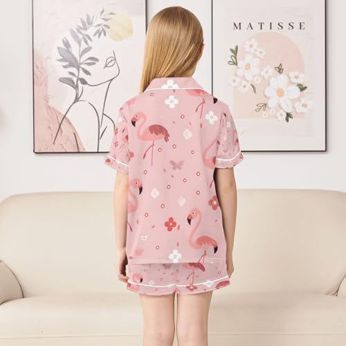 senya Flamingo 1 Satin Summer Pajama Sets Silk Short Sleeve Button Down Sleepwear 1