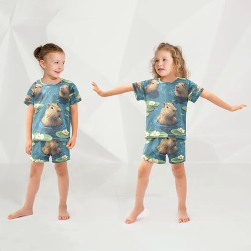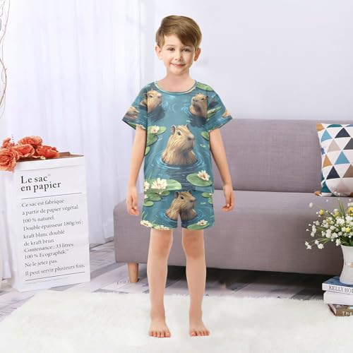 Pajama Sets Short Sleeve Cute Swimming Capybara Pattern Soft Cotton Summer Sleepwear 2 Piece PJS Size 5-14T 5
