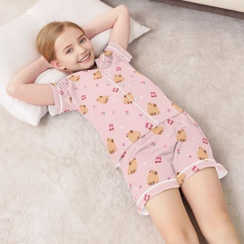 • 🌷 Pattern - Various cute bright colorful pattern design let your little one more stylish. Cute and vibrant patterns of dogs, cats, capybara, hearts and so on. This summer pajama sets can add some playful and funny elements to bedtime.