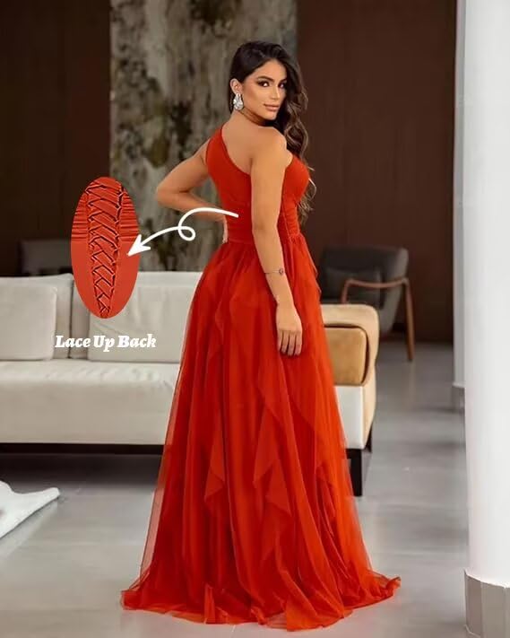 RYANTH One Shoulder Bridesmaid Dresses with Ruffle 2025 Chiffon Long Tired Layered Prom Dresses BW003 4