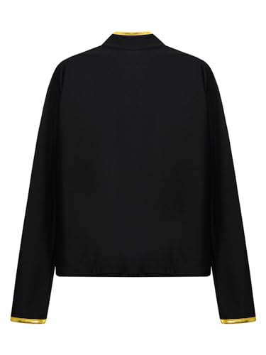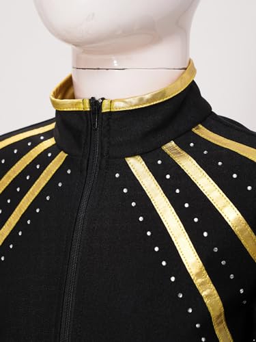Kaerm Kids Girls Long Sleeve Figure Skating Gymnastics Jacket Shiny Rhinestones Metallic Striped Zipper Sweatshirt Coat 7