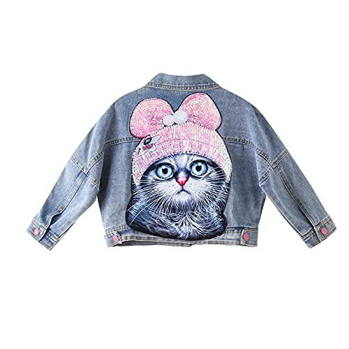 ASHER FASHION Girls Dinim Jacket Classic Sequined Cat Pattern Basic Button Down Jeans Tops Girls’ Outwear Coat (1-13Y) 6
